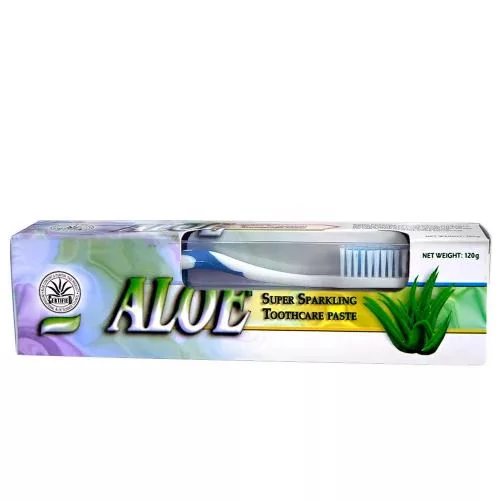 Aloe vera fogkrém Természetes fogápolás minden napra 120 g Jellemzők (fő hatóanyagok): Aloe vera, propolisz A fogkrém hatóanyagai segítenek megőrizni a fogak, az íny és a száj egészségét. Szakértők véleménye szerint minden alkalommal kétszer mossunk fogat, az első nagyon alapos öblítés után újabb adag fogkrémmel folytassuk a fogak tisztítását. Így hatékonyan ápolhatjuk ínyünket és fogainkat. Az Aloe vera külsőleg és belsőleg alkalmazva egyaránt kifejti kedvező hatásait, melyet számos kutatás is igazol. Gyakori jótékony összetevője kozmetikai és belsőleg fogyasztható termékeknek is. Összetevők: Aloe gél, propolisz, mentol, zöldtea kivonat, nátrium-szacharin, szorbitol, nátrium-benzoát.