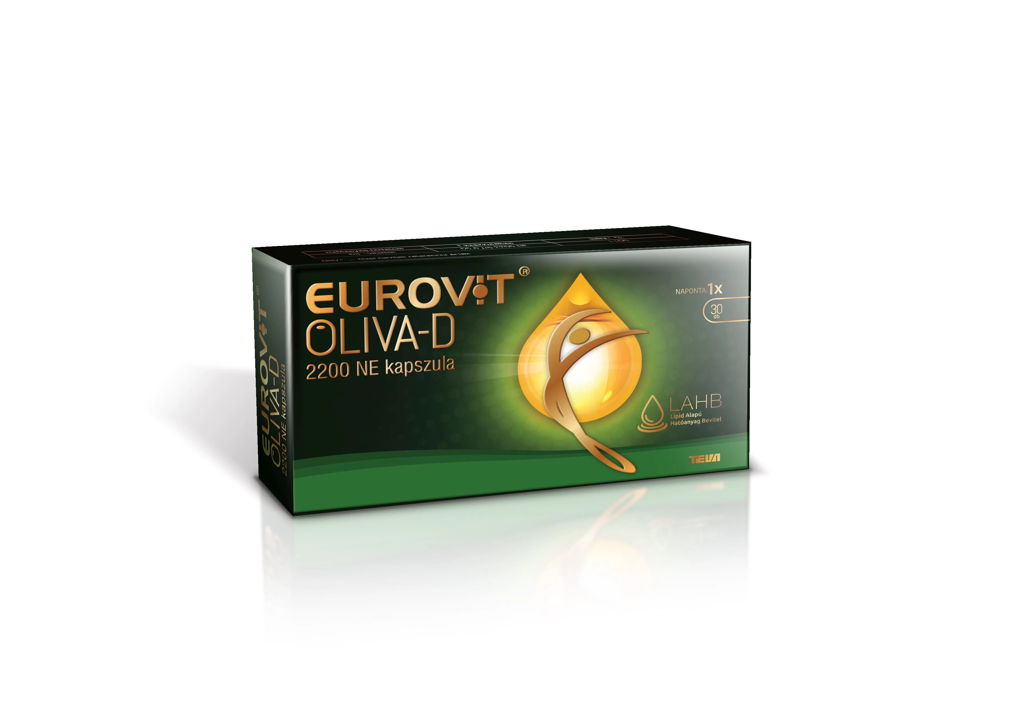 A D-vitamin zsírban oldódó vitamin. Az Eurovit Oliva-D kapszula LAHB (Lipid Alapú Hatóanyag Bevitel) rendszere extra szuz olívaolajat tartalmaz, melyben a D-vitamin eleve oldott, a szervezet számára hasznosítható formában található.