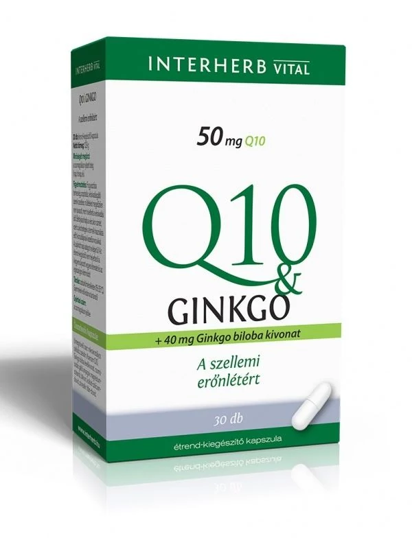 A fizikai és szellemi erőnlétért 30 db étrend-kiegészítő 50 mg Q10 40 mg Ginkgo biloba kivonat A Q10 a szervezetünkben előforduló természetes antioxidáns koenzim. Mennyisége az életkor előrehaladtával folyamatosan csökken, ezért kiegyensúlyozott beviteléről gondoskodni kell. A megfelelő Q10 ellátottság hozzájárul a szív egészséges működéséhez, a normális vérnyomás fenntartásához, a sejtszintű energiatermelő folyamatokhoz. Antioxidáns tulajdonságai révén védi a sejteket az öregedést okozó oxidatív stressz ellen. A Ginkgo biloba levelét eredményesen alkalmazzák a szellemi teljesítőképesség, a koncentrációképesség és a memória megőrzésére, a kognitív képességek korral járó csökkenésének lassítására, illetve az idős korral összefüggő nem megfelelő agyi vérellátás esetén. A készítmény fogyasztását a megfelelő fizikai és szellemi erőnlét megőrzésére ajánljuk. Összetevők/kapszula: Tömegnövelő szer: mikrokristályos cellulóz, zselatin, Koenzim Q10, Ginkgo biloba levélkivonat, csomósodás gátló anyagok: magnézium-sztearát, talkum, kolloid-szilícium-dioxid, színezék: titán-dioxid. Hatóanyag/napi adag (1 kapszula): Koenzim Q10: 50,0 mg Ginkgo biloba levélkivonat: 40,0 mg Ebből: Ginkgo flavonoidok: 9,6 mg Javasolt fogyasztás: napi 1 kapszula. Lehetőleg ebéd után, rágás nélkül nyelje le. Figyelmeztetés: Fogyasztása terhesség, szoptatás, véralvadásgátló szerek szedése, műtéteket megelőzően nem javasolt, mert növelheti a véralvadási időt. Befolyásolhatja a vércukor szintet, ezért cukorbetegek a termék használata előtt konzultáljanak kezelőorvosukkal. Az ajánlott napi adagot ne lépje túl! Az étrend-kiegészítő nem helyettesíti a kiegyensúlyozott vegyes étrendet és az egészséges életmódot! Gyermekek elől elzárva tartandó! Tárolás: szobahőmérsékleten (15-25 ºC). Gyermekek elől elzárva tartandó!