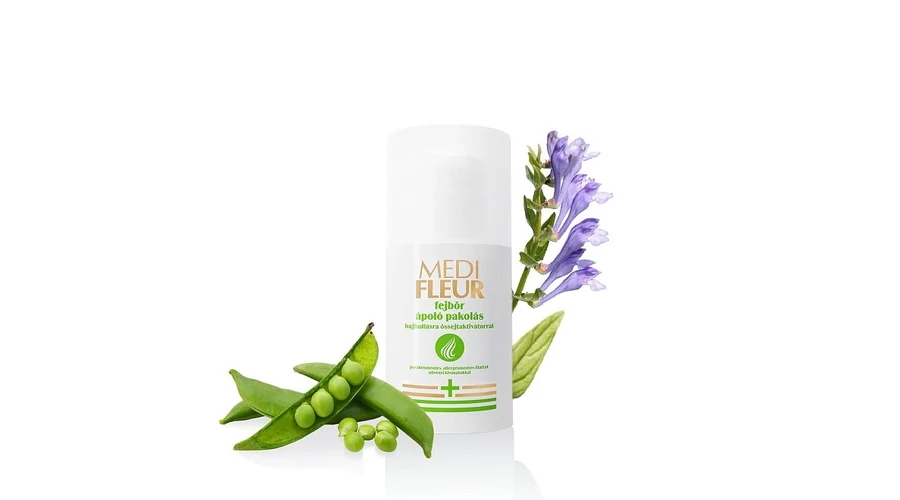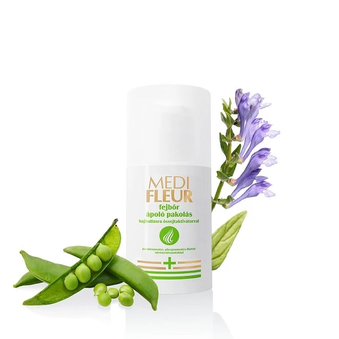 TERMÉKLEÍRÁS A MEDIFLEUR fejbőr ápoló pakolásban lévő borsóból kivont peptid aktivizálja a hajhagymák működéséért felelős őssejteket, hozzájárulva ezzel a hajszálak növekedéséhez. A biotinyl-GHK, oleanolsav és apigenin tartalmú hatóanyag fokozza a szőrtüsző sejtjeinek működését, erősítve annak hajszál megtartó erejét, ezáltal lassítva a hajhullást. A gél színét a hatóanyagok adják. HASZNÁLAT A hatóanyagok felszívódása érdekében legalább 20 perccel minden hajmosás előtt a pakolást vigye fel és masszírozza a fejbőrébe. Alkalmazása kúraszerűen, minimum 4 hónapig ajánlott. Használata javasolt a MEDIFLEUR sampon hajhullásra termékkel egyidejűleg. ÖSSZETEVŐK Aqua, Glycerin, PPG-26-Buteth-26, PEG-40 Hydrogenated Castor Oil, Apigenin, Oleanolic Acid, Biotinoyl Tripeptide-1, Herb extract mixt. (Salvia Officinalis, Achillea Millefolium, Arctium Lappa, Urtica, Betula Pendula), Alcohol, Pisum Sativum (Pea) Peptide, Xanthan Gum, Butylene Glycol, Glycine Soja Germ Extract, Triticum Vulgare Germ Extract, Malic Acid, Actinidia Chinensis (Kiwi) Fruit Juice, Citrus Aurantium Dulcis (Orange) Juice, Citrus Paradisi (Grapefruit) Juice, Pyrus Malus (Apple) Juice, Trideceth-9, Prunus Amygdalus Dulcis (Sweet Almond) Seed Extract, Hydrolyzed Ceratonia Siliqua Seed Extract, Zea Mays Starch, Sodium Benzoate, Potassium Sorbate, Polyquaternium-7, Guar Hydroxypropyltrimonium Chloride, Propanediol, Arginine, Lactic Acid, Scutellaria Baicalensis Root Extract, Gluconolactone, Calcium Gluconate, Propylene Glycol, Lawsonia Inermis (Henna) Leaf Extract, Glucose, Tetrahydroxypropyl Ethylenediamine, Phenoxyethanol, Ethylhexylglycerin, Allantoin, Parfum. Figyelmeztetés: Amennyiben a szembe kerülne, úgy azonnal öblítse ki!