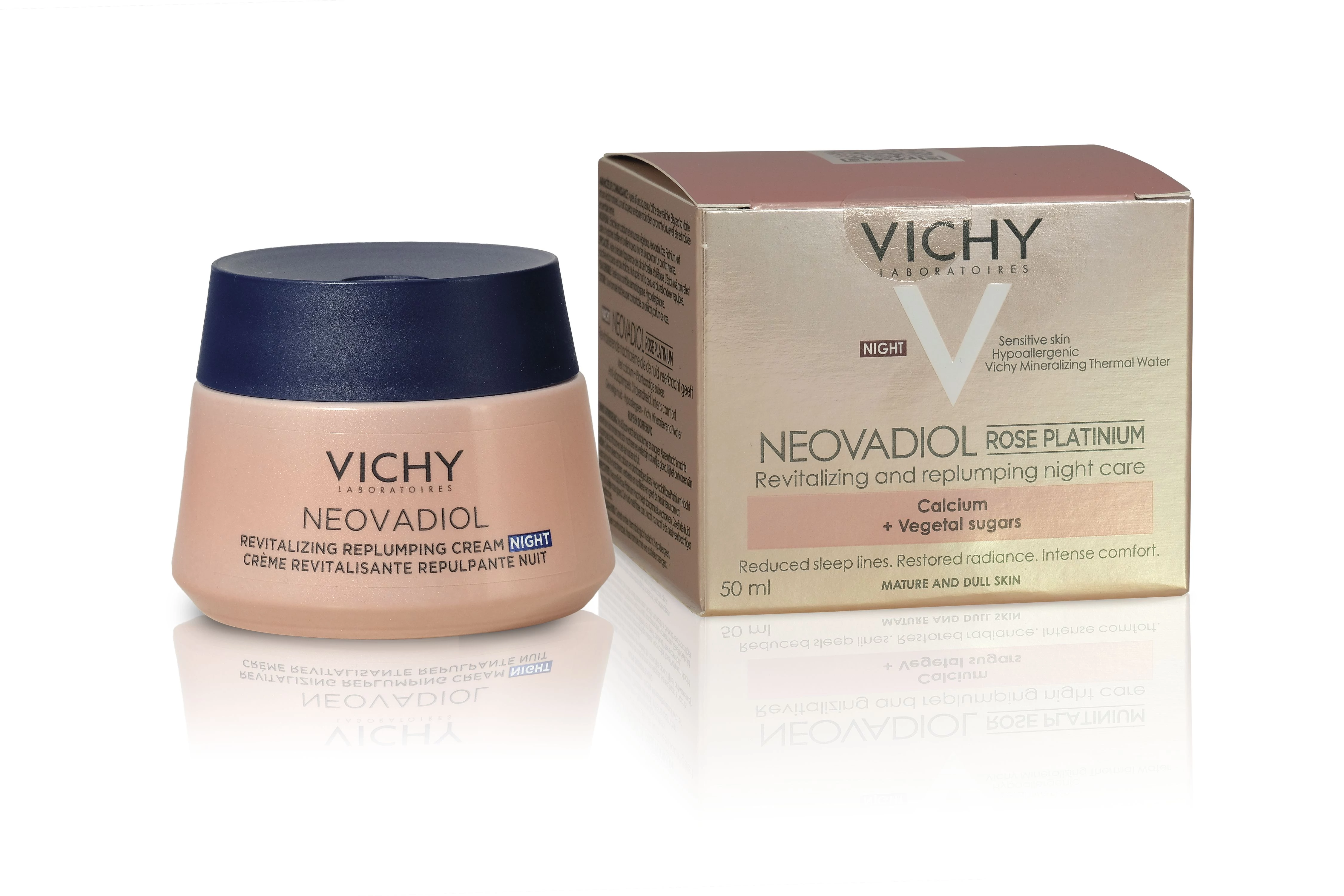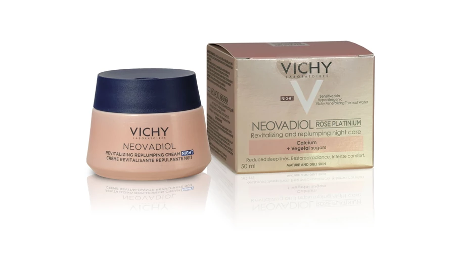 VICHY NEOVADIOL ROSE PLATINUM revitalizáló és nedvességgel feltöltő éjszakai krém. A VICHY ÁLLÁSFOGLALÁSA: Termékeink formuláját tiszta, VULKANIKUS EREDETŰ VICHY TERMÁLVÍZZEL gazdagítjuk, amely a francia vulkanikus területeken született. 15 ásványi anyagban gazdag, segít erősíteni a bőrbarriert a mindennapos hatásokkal szembeni védelemért. Formuláinkat a TERMÉSZET ÁLTAL IHLETETT és szigorúan válogatott összetevők alkotják. Bőrgyógyászati ellenőrzés mellett ÉRZÉKENY BŐRÖN TESZTELT. ÁTTÖRŐ TUDÁS: 60 év felett a bőr elvékonyodik és elkezd megereszkedni. Ennek eredményeként a bőr veszít vitalitásából és természetes ragyogásából. Az éjszaka során a bőr kevésbé regenerálódik, mint korábban, ébredéskor alvási ráncok láthatók rajta, és fáradtnak látszik. ÚJ: A kalciummal és növényi cukrokkal gazdagított Neovadiol Rose Platinium éjszakai krém segít hidratálni, erősíteni és tonizálni a bőrt, miközben intenzív kényelemérzetet is biztosít neki.